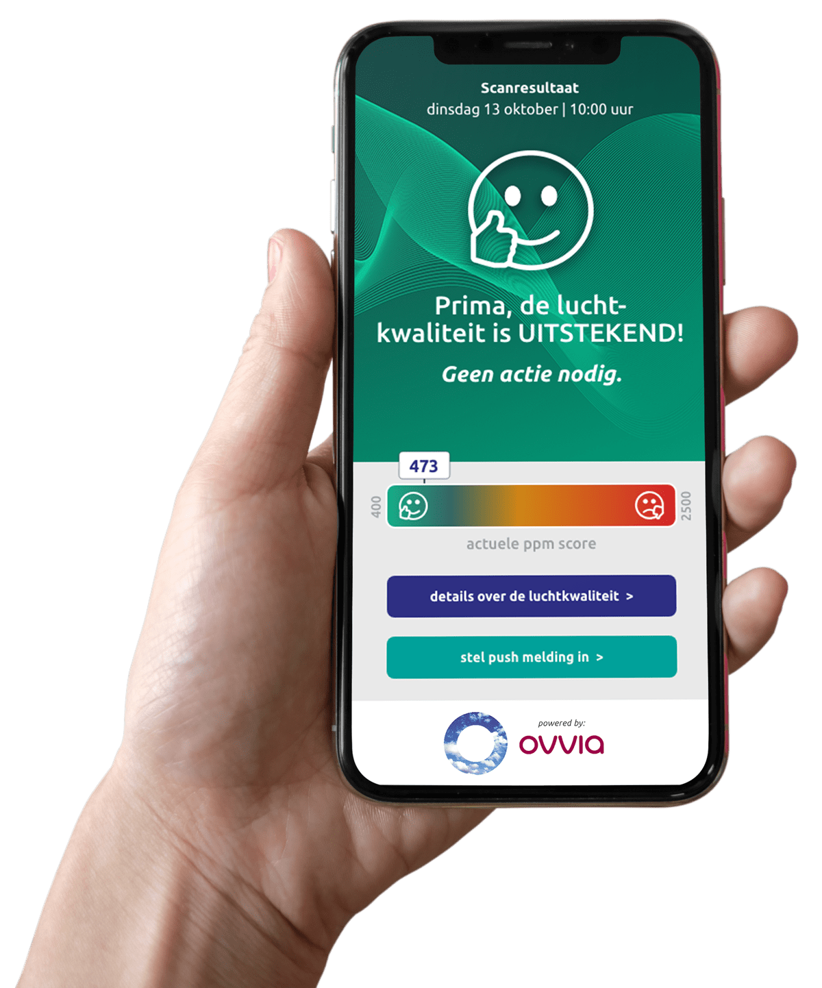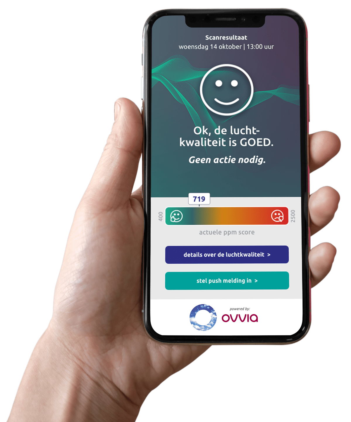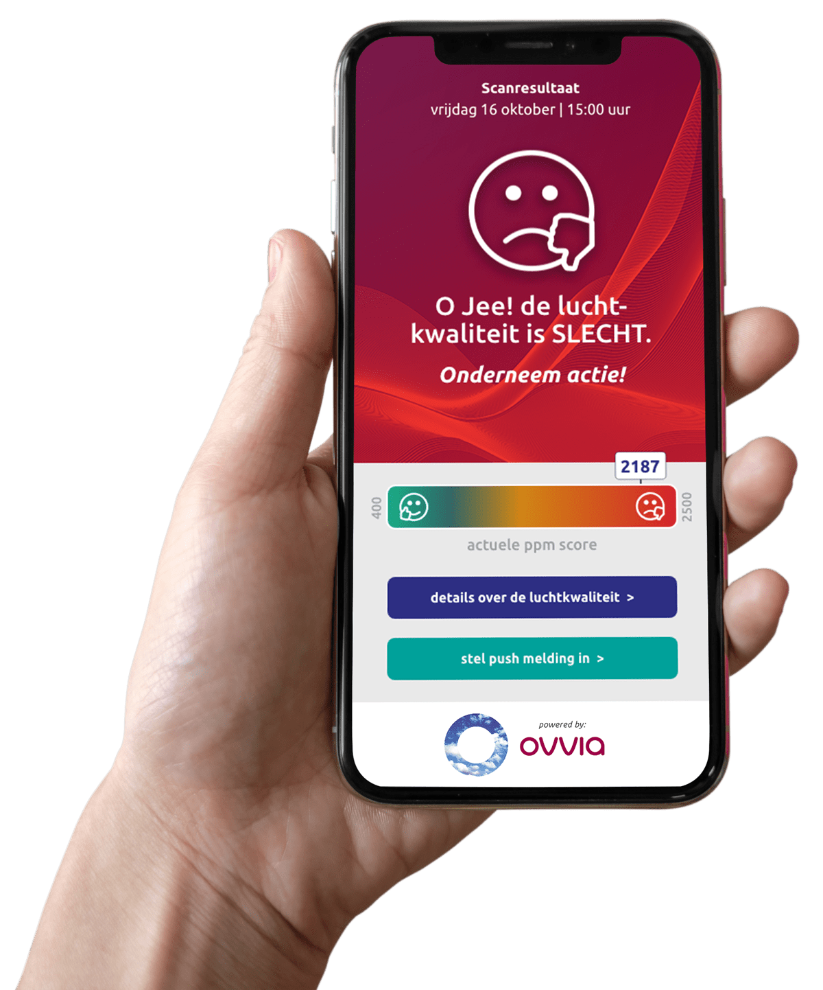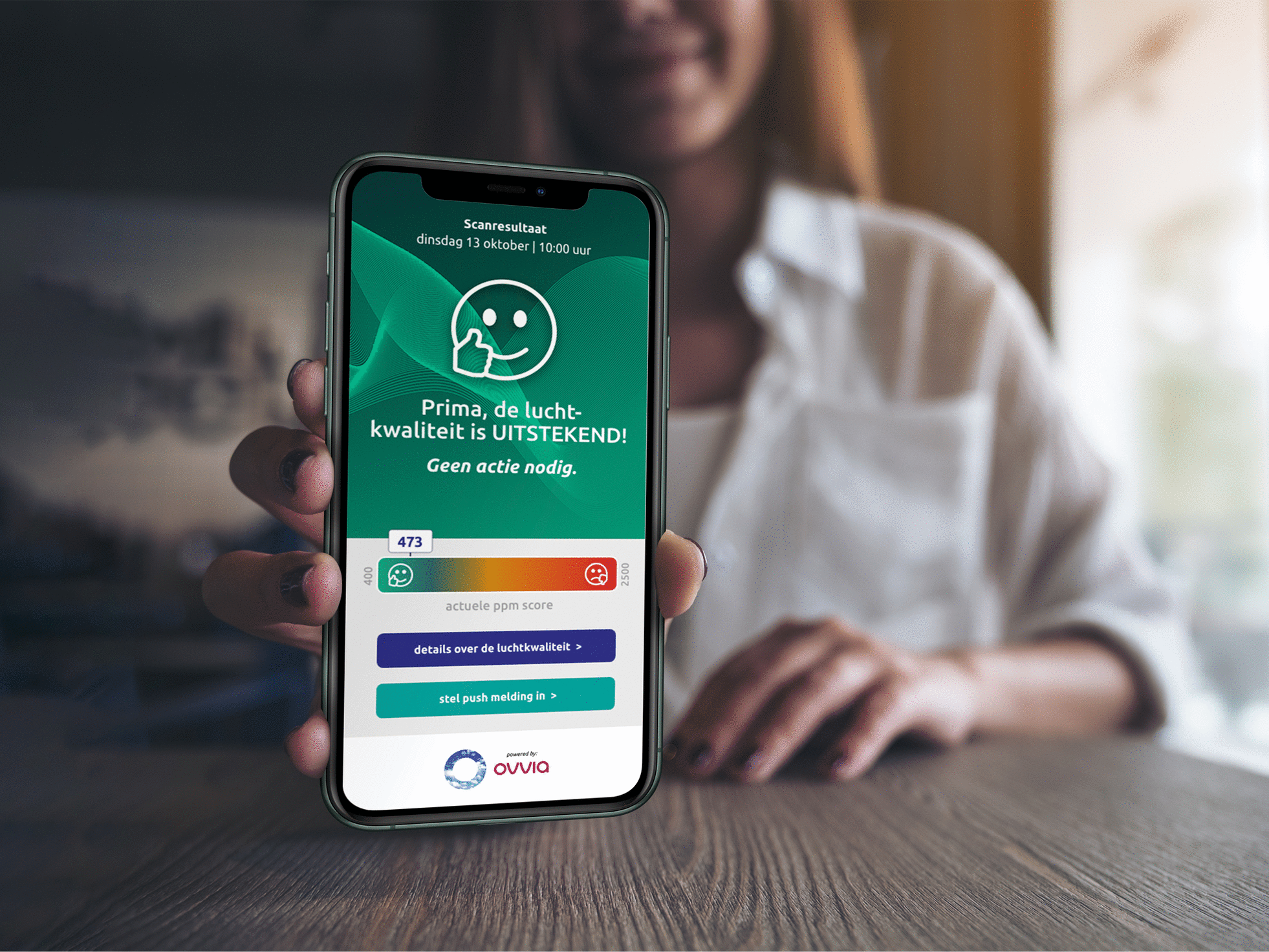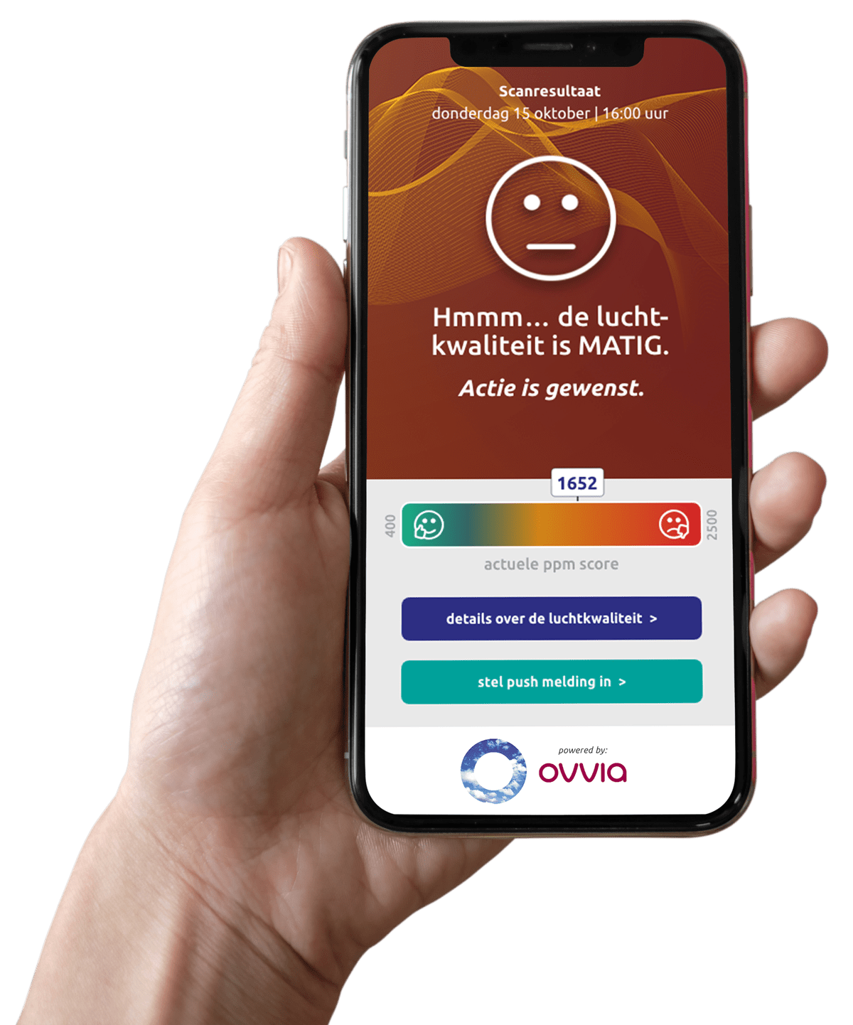 Bied gebruikers directe terugkoppeling over de luchtkwaliteit op zijn of haar telefoon. Bij het overschrijden van een grenswaarde ontvangt de gebruiker een bericht met een 'call to action': dat kan zijn het openzetten van ramen (en deuren) om te luchten of het verminderen van het aantal bezoekers in de ruimte.